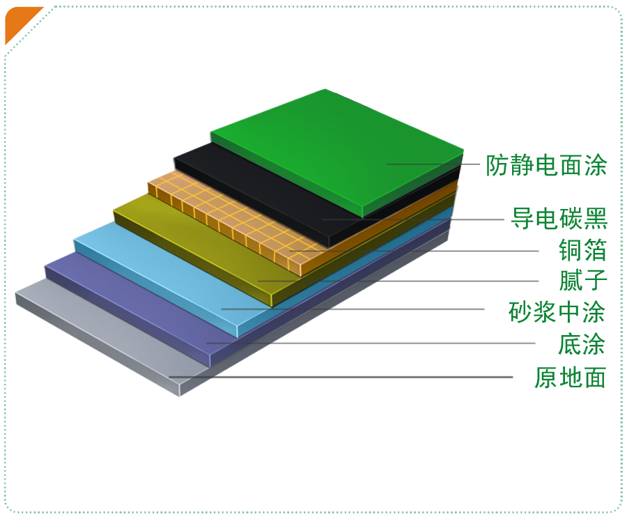 2.底涂:涂刷1-2遍環(huán)氧防靜電底漆(參考用量0.15-0.3kg/m2)